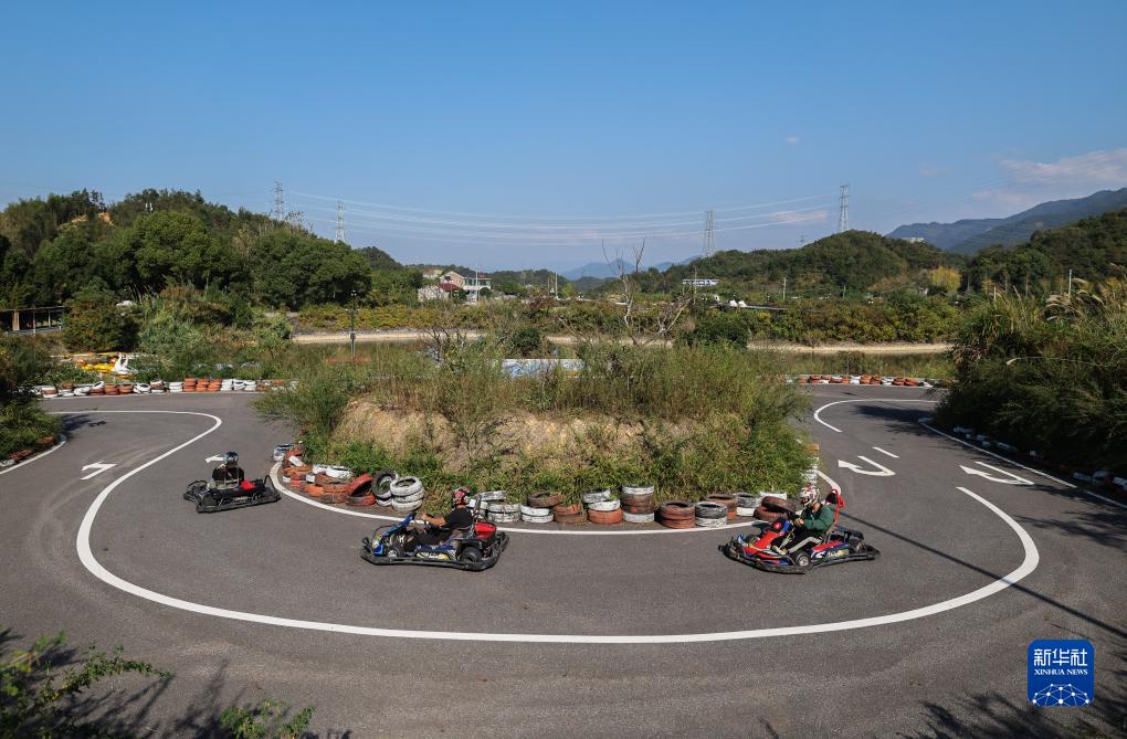 10月23日,游客在建德市楊村橋鎮嶺源樂(lè )活島休閑基地體驗卡丁車(chē)。