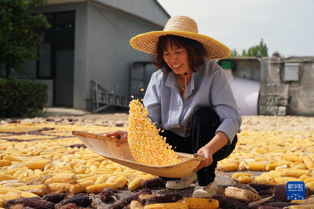 在北京市平谷區北臺頭村村委會(huì ),王翠云篩選玉米粒(10月4日攝)。