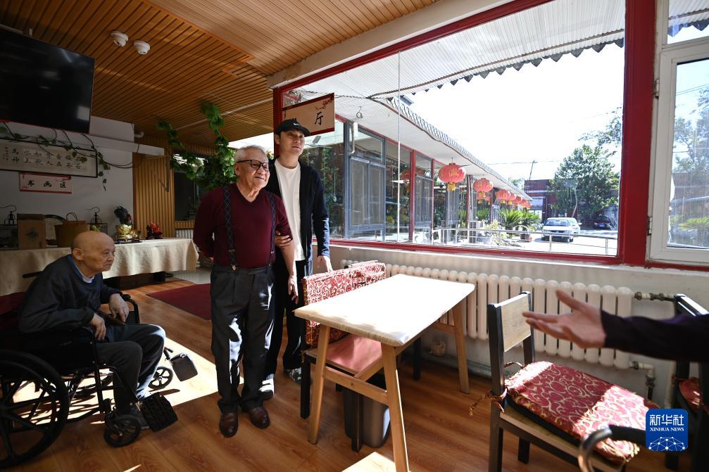 陳卓在靜雅老人院進(jìn)行陪護工作(10月20日攝)。