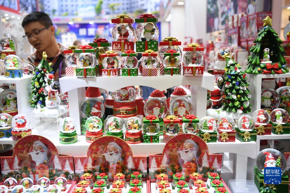 這是10月23日拍攝的圣誕飾品展臺。