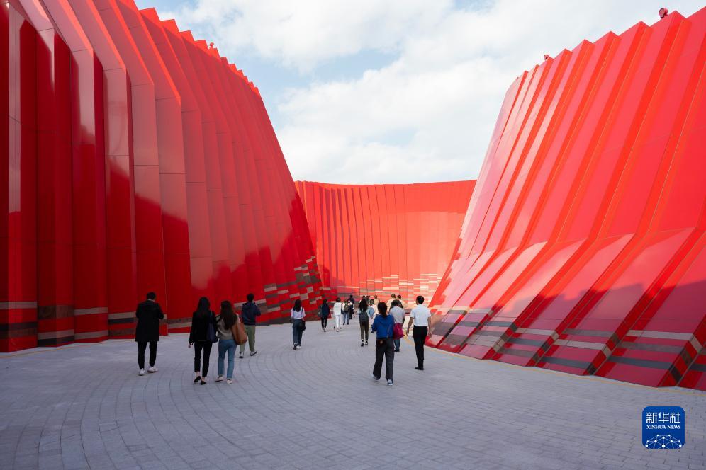 10月23日,觀(guān)眾準備進(jìn)入“紅飄帶”數字體驗館內。