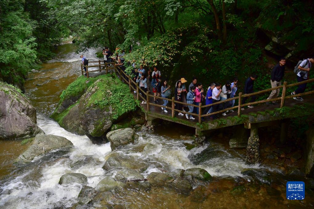 游客在位于朱家灣村的牛背梁國家森林公園內參觀(guān)游玩(2020年7月22日攝)。