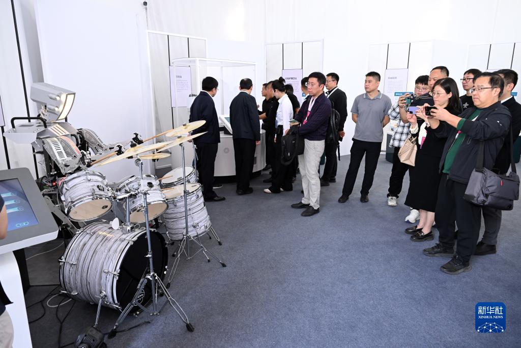 10月24日,觀(guān)眾在第六屆世界聲博會(huì )上參觀(guān)一款會(huì )打架子鼓的機器人。