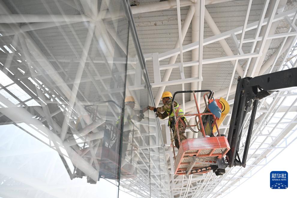 工人在雄安體育中心體育場(chǎng)施工(10月24日攝)。