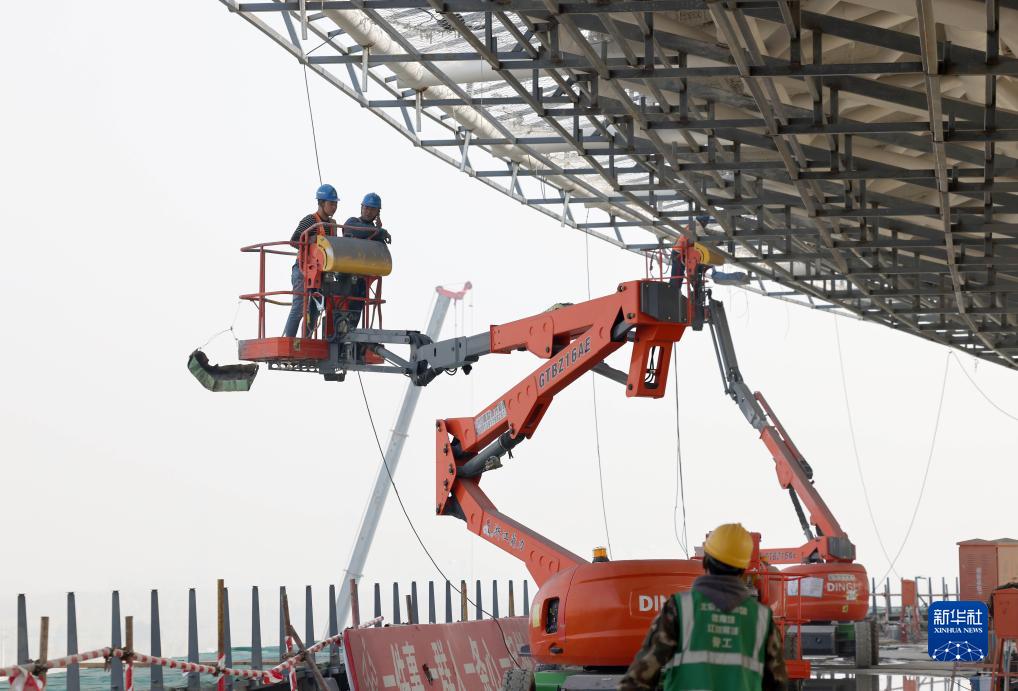 工人在雄安體育中心體育場(chǎng)施工(10月24日攝)。