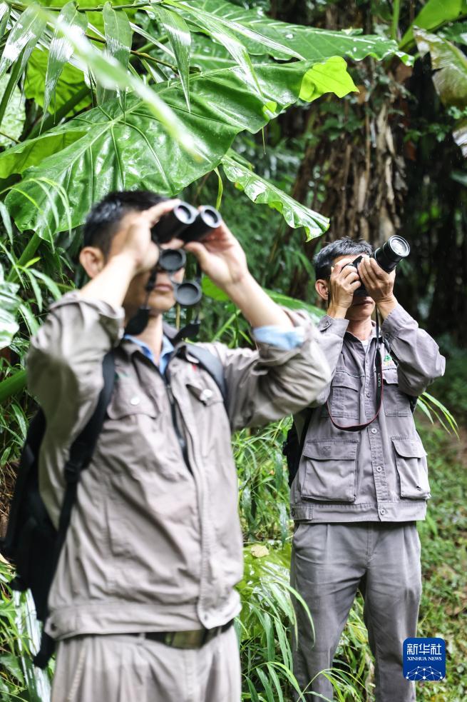 凌晨5點(diǎn),海南長(cháng)臂猿監測隊隊員李文永已在晨光泛起前抵達長(cháng)臂猿?;顒?dòng)的區域。根據猿鳴定位尋蹤,統計海南長(cháng)臂猿種群個(gè)數,拍攝照片和視頻,這些都是他的工作內容?!坝袝r(shí)為監測需要,背著(zhù)幾十斤重的生活物資和裝備,在山上吃住也是常事。海南長(cháng)臂猿的‘歌聲’,誰(shuí)聽(tīng)了都喜歡,很想一直能聽(tīng)到它們的聲音”,李文永說(shuō)。