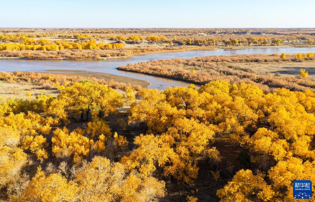 金秋時(shí)節,內蒙古自治區阿拉善盟額濟納旗的胡楊林披上“金裝”。