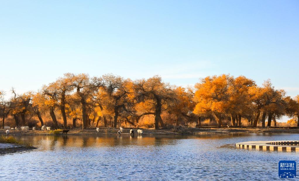 金秋時(shí)節,內蒙古自治區阿拉善盟額濟納旗的胡楊林披上“金裝”。