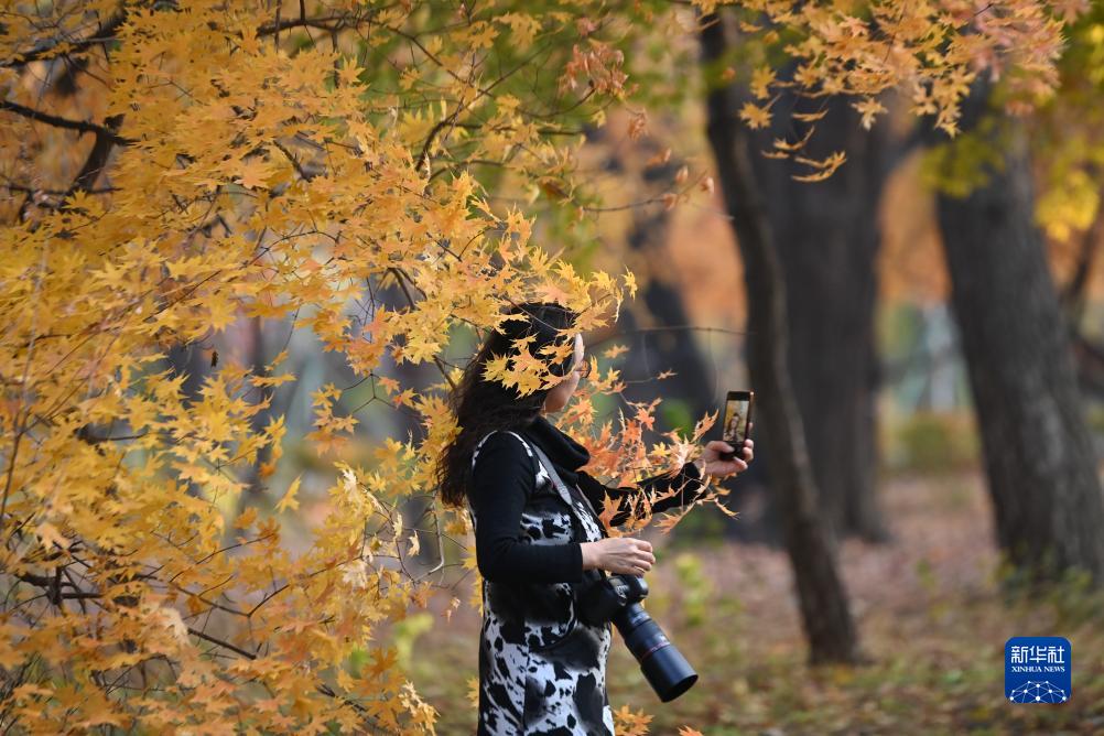 10月24日,市民在長(cháng)春市南湖公園欣賞秋景。