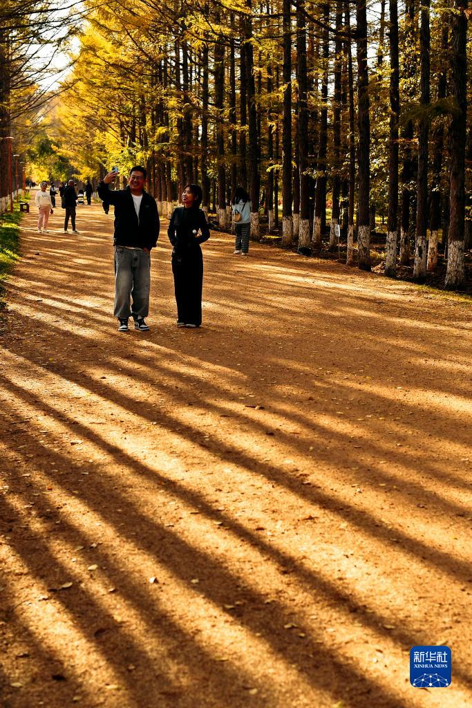 市民在長(cháng)春市百木園散步拍照(10月19日攝)。