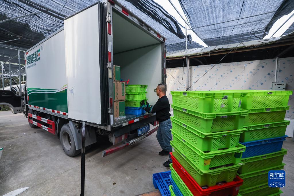 10月25日,在杭州市臨安區玲瓏街道雙源村的鼎新農業(yè)基地食用菌共富工坊,工人把當天采收的菌菇裝車(chē)運往杭州城區。該農業(yè)基地以培育、種植食用菌為主,為當地提供就業(yè)崗位60余個(gè)。