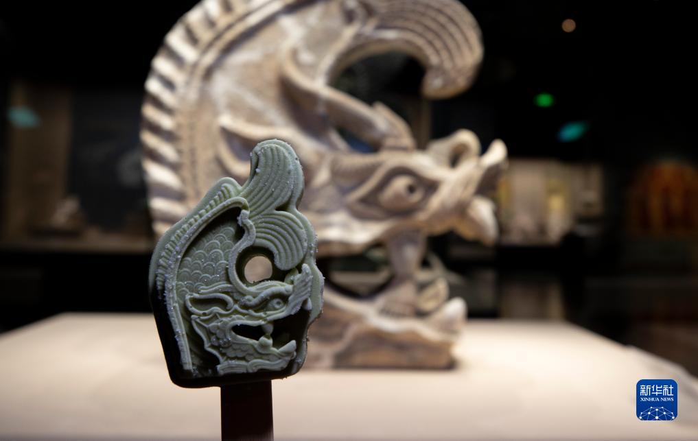 寧夏博物館的文創(chuàng )產(chǎn)品鴟吻文創(chuàng )雪糕(前)與館藏灰陶鴟吻(2022年5月16日攝)。寧夏博物館立足自身館藏文物,以寧夏地域特色文化為基礎,成立文創(chuàng )產(chǎn)品設計研發(fā)團隊,將年輕時(shí)尚元素注入文創(chuàng )產(chǎn)品中。