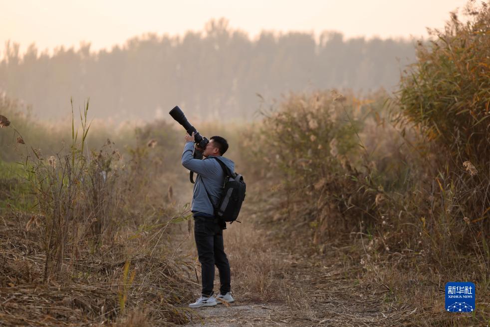10月24日,韓戰橋在雄安新區孝義河河口濕地拍攝野生鳥(niǎo)類(lèi)。