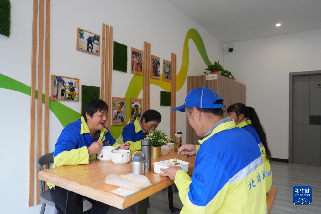 10月25日,環(huán)衛工人在重慶市北碚區云清路“勞動(dòng)者港灣”吃午飯。