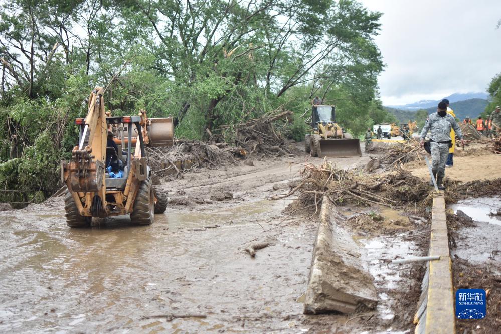 10月25日,在墨西哥格雷羅州奇爾潘辛戈市,工作人員清理因颶風(fēng)“奧蒂斯”過(guò)境而堵塞的道路。