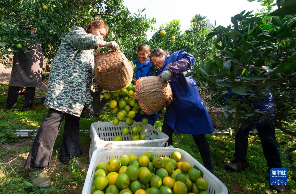 10月24日,湖北省宜昌市秭歸縣歸州鎮屈原廟村村民在收獲柑橘。