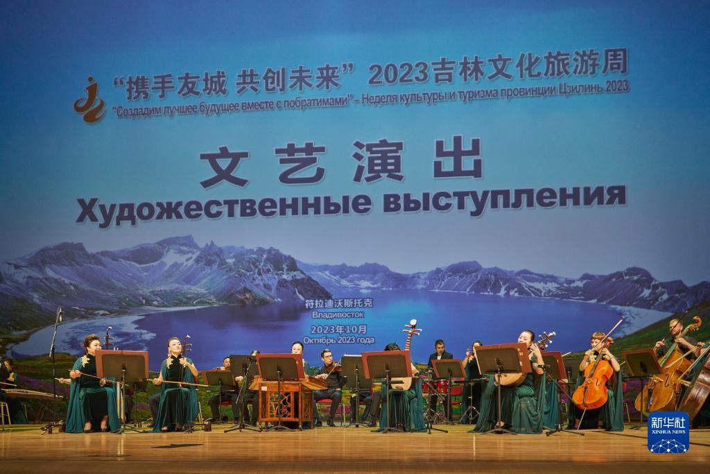 10月25日,吉林省交響樂(lè )團民族管弦樂(lè )隊在俄羅斯符拉迪沃斯托克舉行的“攜手友城 共創(chuàng )未來(lái)”2023吉林文化旅游周開(kāi)幕式上演奏。