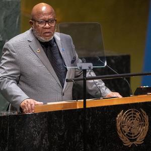 10月26日,在位于紐約的聯(lián)合國總部,第78屆聯(lián)大主席弗朗西斯在關(guān)于巴以沖突的第十次緊急特別會(huì )議上發(fā)表講話(huà)。