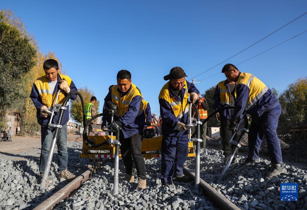 10月26日,施工人員在錦承線(xiàn)金溝站(不含)-朝陽(yáng)南站(不含)區間段轉正線(xiàn)改造封鎖施工現場(chǎng)作業(yè)。