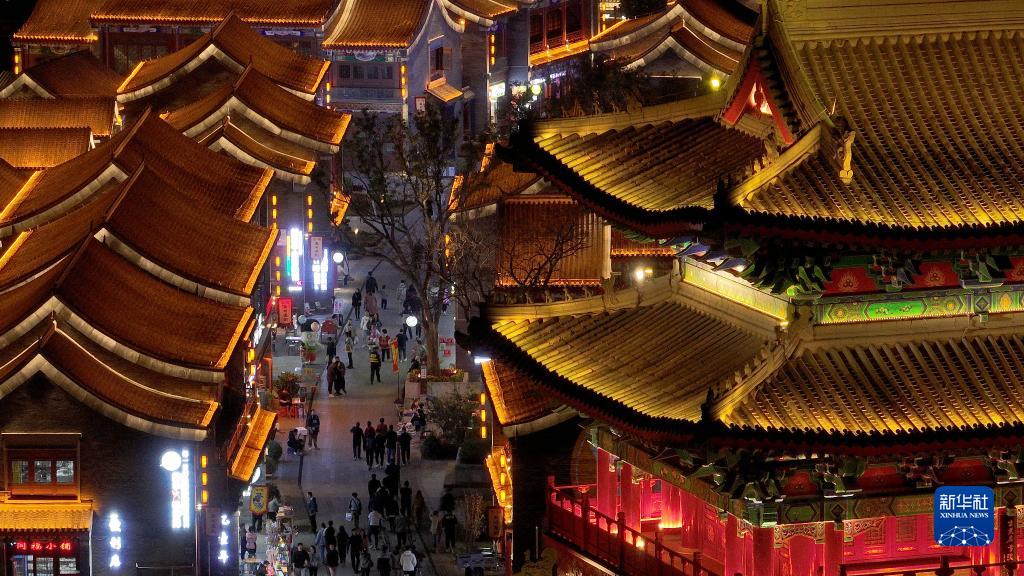 入夜時(shí)分,在河北省滄州市中心城區大運河畔,匯集美食、文創(chuàng )、民俗等多種元素的南川老街燈火輝煌。