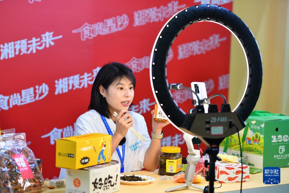 10月27日,在長(cháng)沙國際會(huì )展中心舉辦的農博會(huì )現場(chǎng),參展商在直播帶貨。