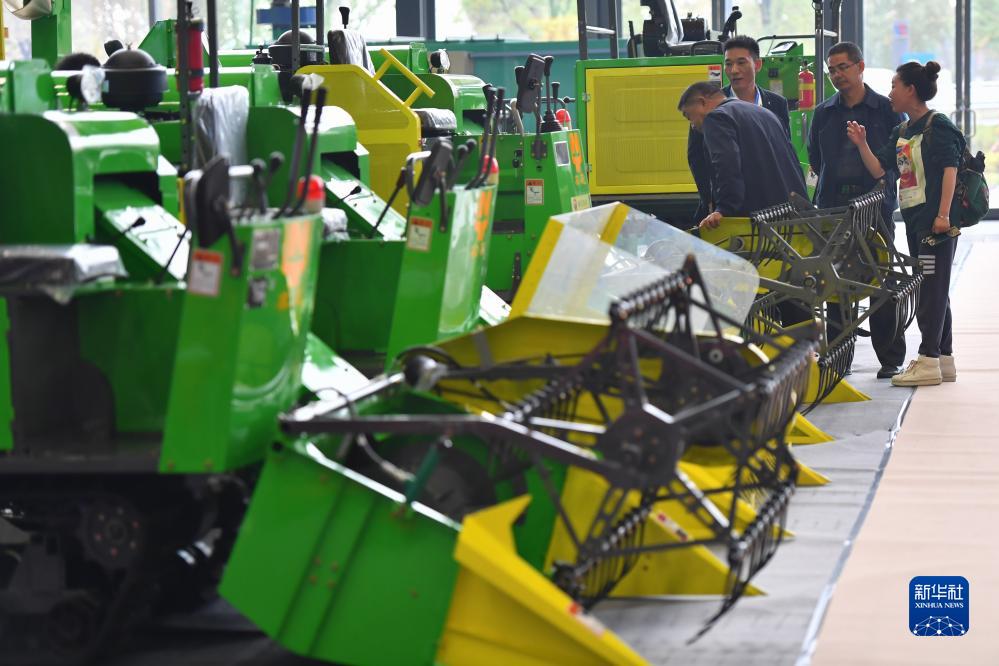 10月27日,在長(cháng)沙國際會(huì )展中心舉辦的農博會(huì )現場(chǎng),參觀(guān)者在了解收割機。