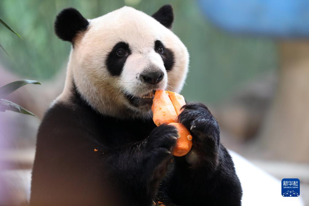 10月27日是國際熊貓日。廣州長(cháng)隆野生動(dòng)物世界保育員為大熊貓“酷酷”準備了豐盛的“滿(mǎn)漢全席”,包括“鳳尾魚(yú)翅”“干連福海參”“羅漢大蝦”等八大菜式。