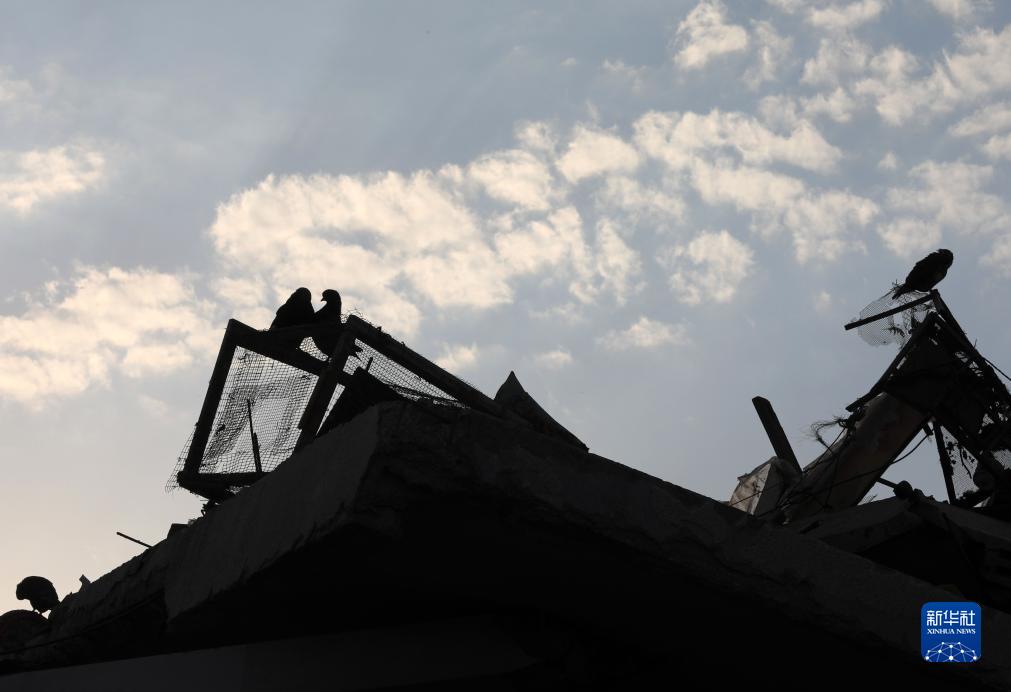 這是10月27日在加沙地帶南部城市汗尤尼斯拍攝的以色列襲擊后的受損建筑。