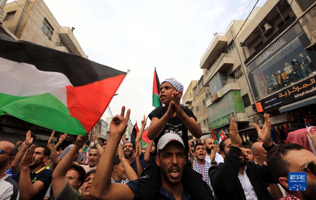當日,民眾在安曼參加游行,表達對巴勒斯坦人民的支持。