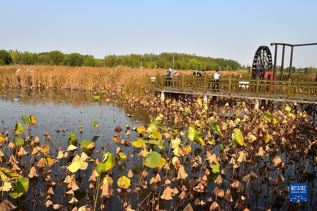 10月26日在山東省聊城市位山灌區拍攝的在引黃工程沉淀池區開(kāi)發(fā)的位山黃河公園一角。位山灌區是黃河流域具有跨流域調水和生態(tài)保護功能的重要水利設施。