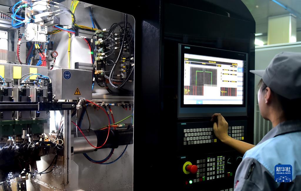 10月26日,在山東省聊城市高新區山東鑫亞格林鮑爾燃油系統有限公司生產(chǎn)車(chē)間,技術(shù)人員在生產(chǎn)線(xiàn)上操作設備。