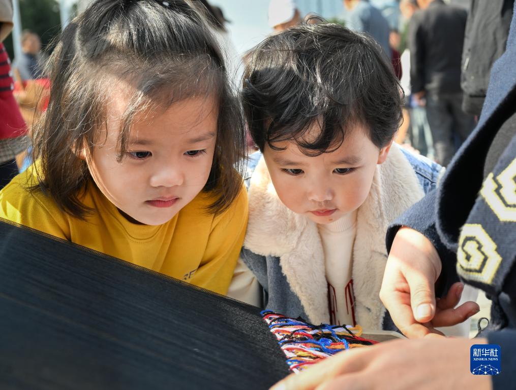 10月28日,小朋友在觀(guān)看“西蘭卡普”制作。