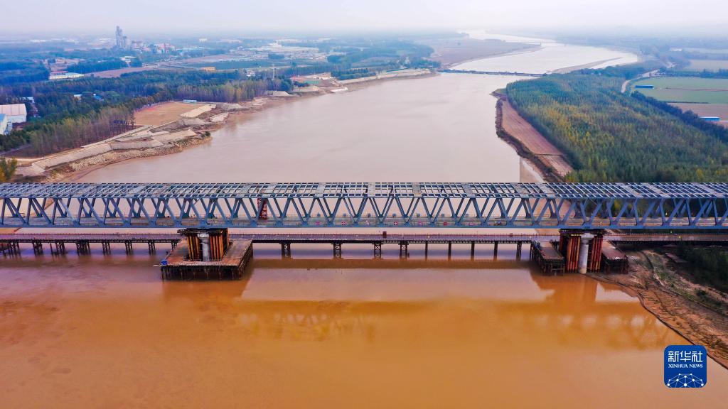 10月28日拍攝的合龍后的聊(城)泰(安)鐵路黃河公鐵橋(無(wú)人機照片)。