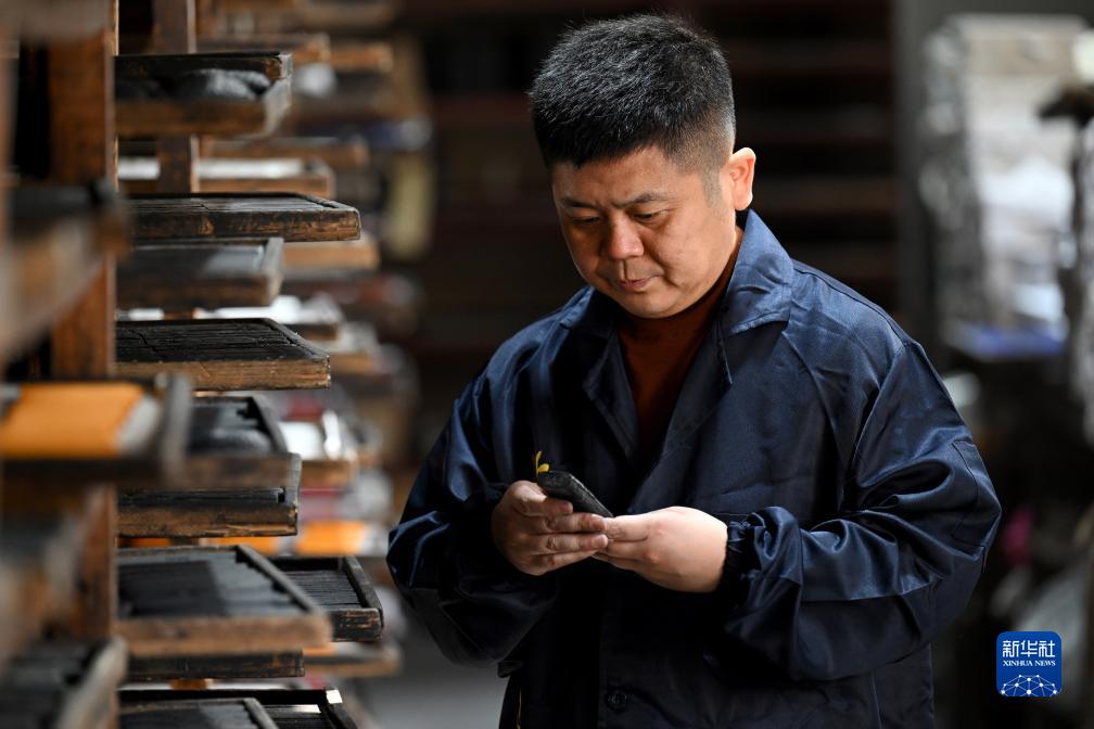 10月24日,在安徽省黃山市歙縣老胡開(kāi)文墨業(yè)有限公司,周健在查看通風(fēng)晾制的墨。