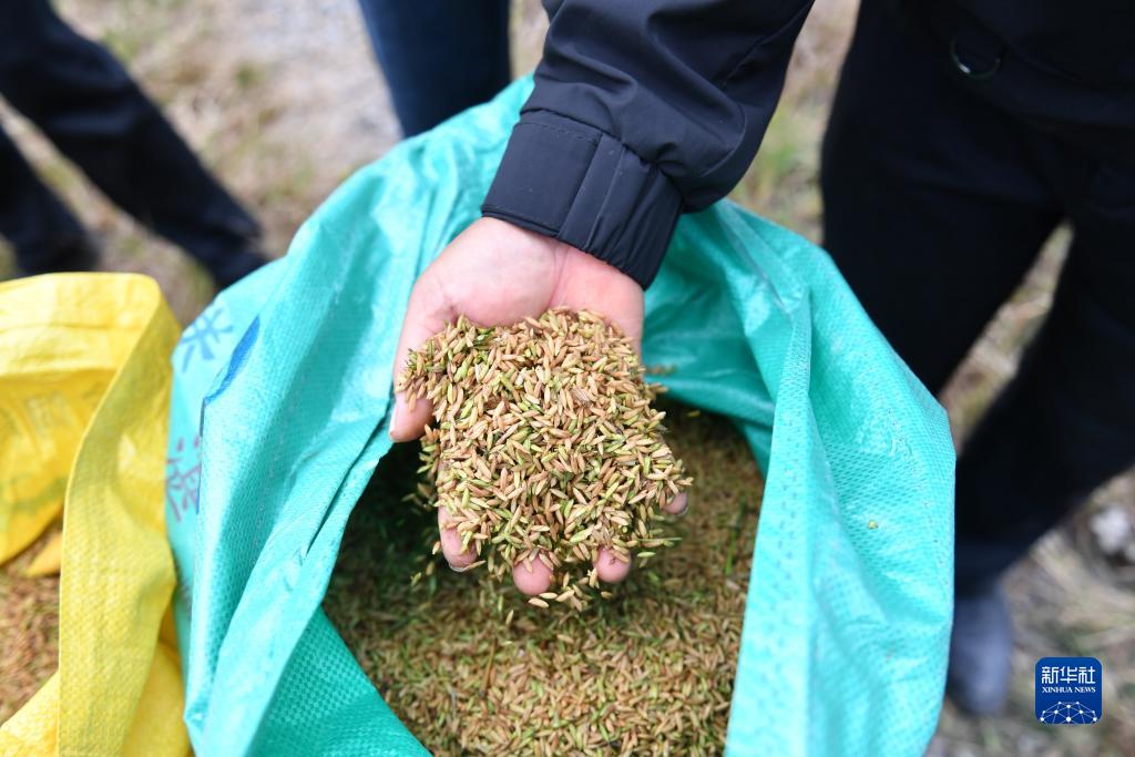 這是10月28日在婁底市雙峰縣永豐街道松坪村“稻再油”示范片拍攝的再生季稻谷。