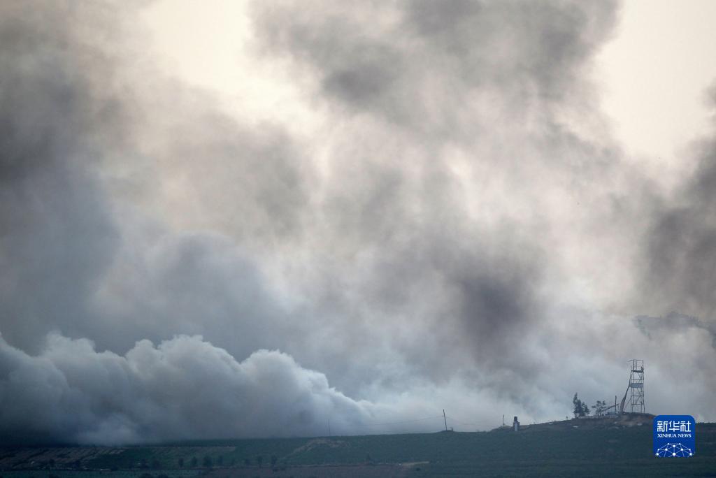 這張10月28日從加沙邊境以色列一側拍攝的照片顯示,加沙地帶北部遭以軍襲擊后升起濃煙。
