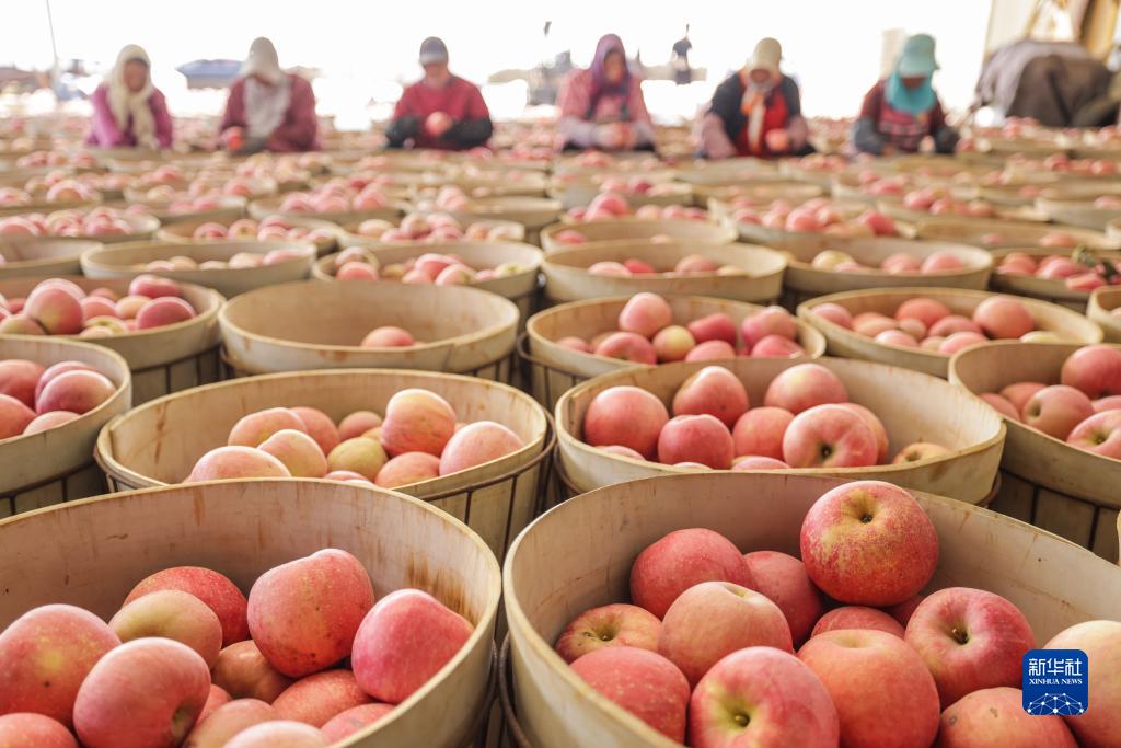 10月28日,在山東省榮成市夏莊鎮一處蘋(píng)果園,果農們在分揀、裝運蘋(píng)果。