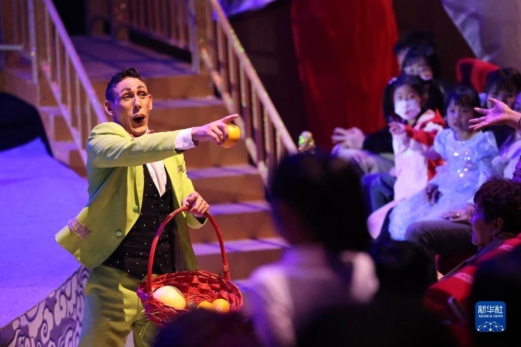 10月28日,演員在河北省滄州市吳橋縣吳橋雜技大世界景區江湖大劇院與觀(guān)眾互動(dòng)。