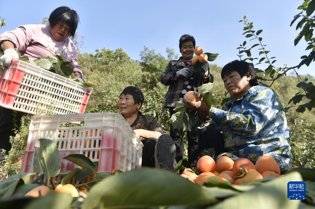 10月28日,村民在禹州市磨街鄉劉門(mén)村的柿園里整理剛采摘的柿子。