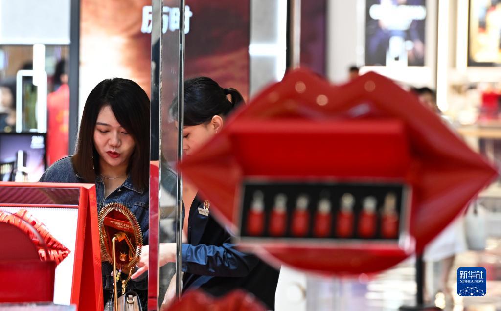 消費者在位于海南省??谑械暮?趪H免稅城內購物(10月28日攝)。