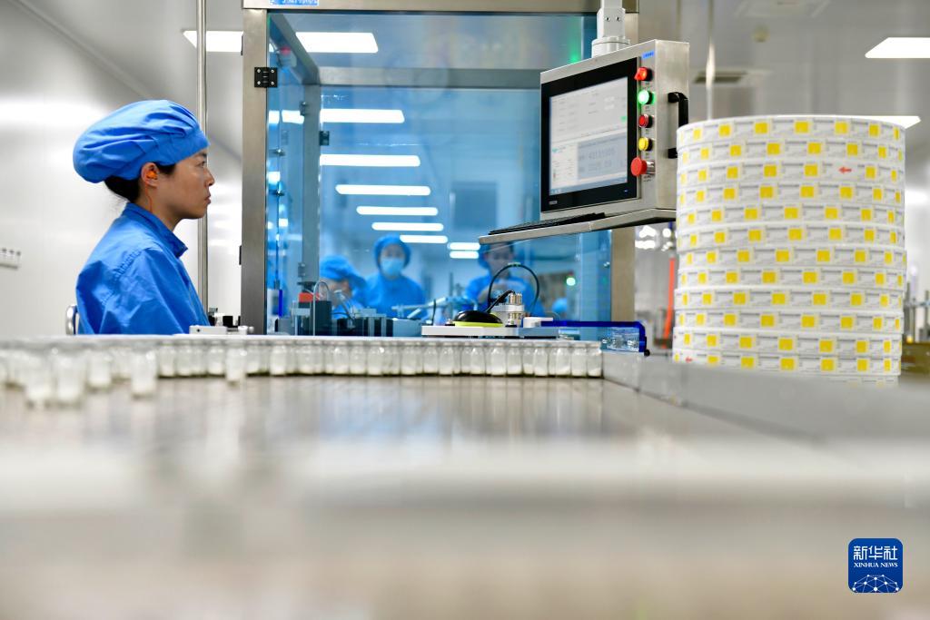 10月29日,在山東二葉制藥有限公司,工作人員在藥品生產(chǎn)線(xiàn)值守。