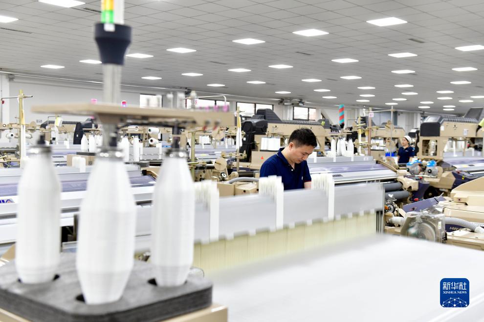 10月28日,在菏澤市定陶區華澤高端纖維新材料智能制造產(chǎn)業(yè)園,工作人員在生產(chǎn)設備前值守。