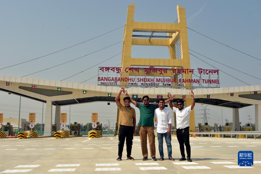 10月29日,人們在孟加拉國吉大港市卡納普里河底隧道一處收費站前慶祝通車(chē)。
