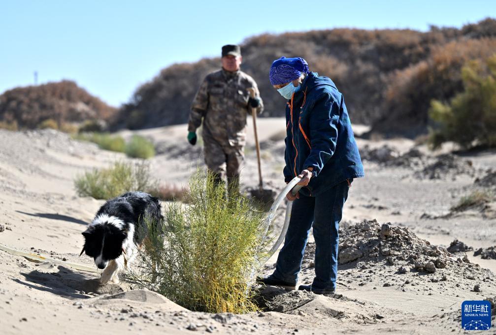 在黑城遺址附近,還保留著(zhù)蘇和與德力格2004年扎根沙漠時(shí)建的三間平房,如今這里已是一片綠蔭?!吧衬薰钡募胰藗兘舆^(guò)蘇和老人的擔子,在人跡罕至的沙漠深處譜寫(xiě)生命與綠色的贊歌。
