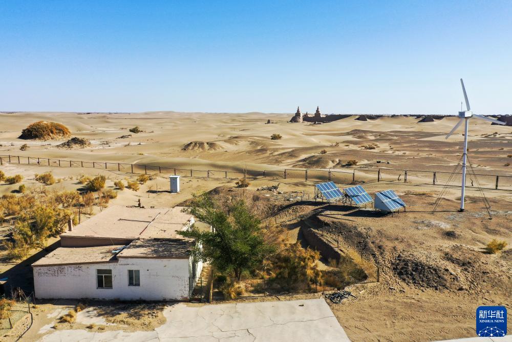 黑城遺址附近,依然保留著(zhù)蘇和與德力格在2004年建的平房(無(wú)人機照片,10月27日攝)。
