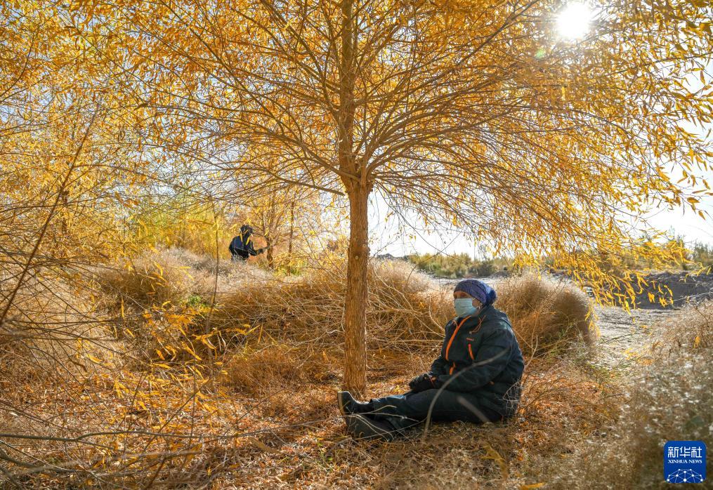 10月28日,德力格坐在胡楊樹(shù)下休息。