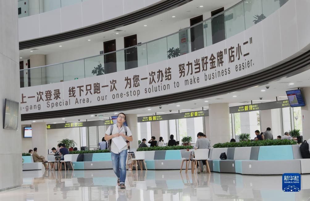 這是2019年8月20日拍攝的上海自貿區臨港新片區行政服務(wù)中心內景。