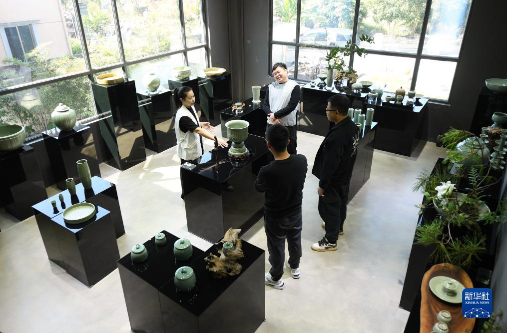 “95后”陶瓷夫妻檔季雙俊和季資美是高中和大學(xué)時(shí)的同學(xué),因為共同的興趣走到一起。從景德鎮陶瓷工藝美院畢業(yè)后回到故鄉龍泉,夫妻二人在甌江旁的爐田村駐扎下來(lái),成立了“梅夫人”工作室,潛心鉆研北宋風(fēng)格的青瓷器。兩人從古瓷中尋找靈感,力圖重現北宋龍泉窯的胎釉特點(diǎn),并借鑒青銅器、金銀器、古代服裝上的紋樣,在瓷上傾注對傳統文化的熱愛(ài)。