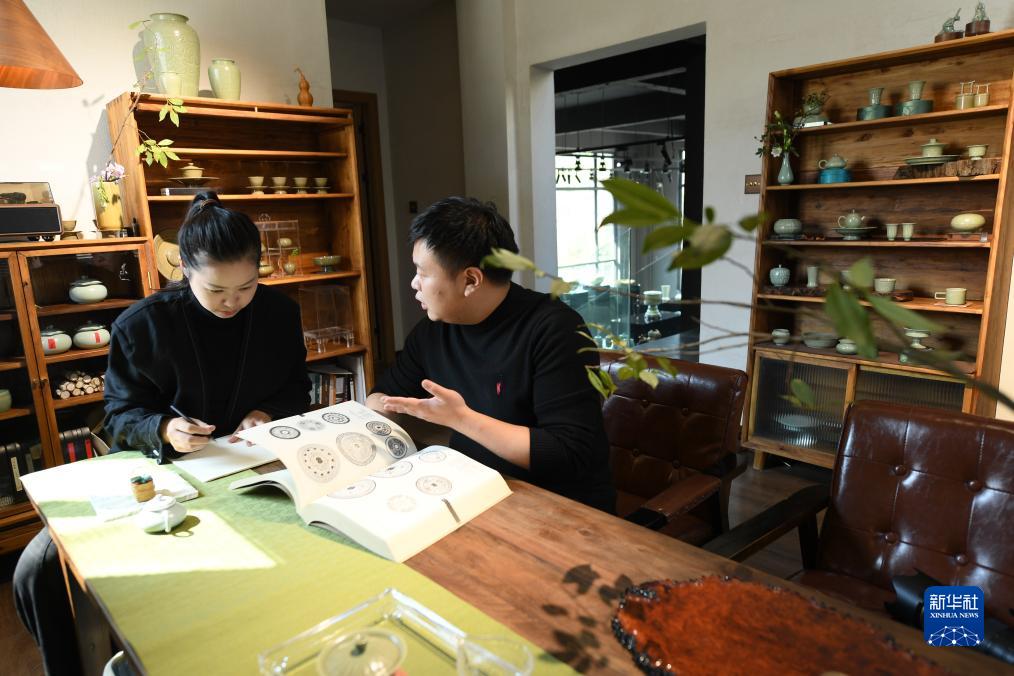 “95后”陶瓷夫妻檔季雙俊和季資美是高中和大學(xué)時(shí)的同學(xué),因為共同的興趣走到一起。從景德鎮陶瓷工藝美院畢業(yè)后回到故鄉龍泉,夫妻二人在甌江旁的爐田村駐扎下來(lái),成立了“梅夫人”工作室,潛心鉆研北宋風(fēng)格的青瓷器。兩人從古瓷中尋找靈感,力圖重現北宋龍泉窯的胎釉特點(diǎn),并借鑒青銅器、金銀器、古代服裝上的紋樣,在瓷上傾注對傳統文化的熱愛(ài)。