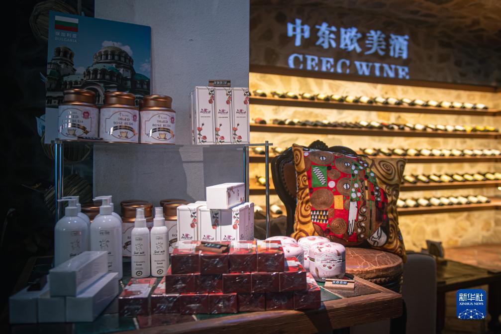 10月31日在寧波老外灘步行街中東歐商品交流體驗中心內拍攝的來(lái)自中東歐國家的商品。